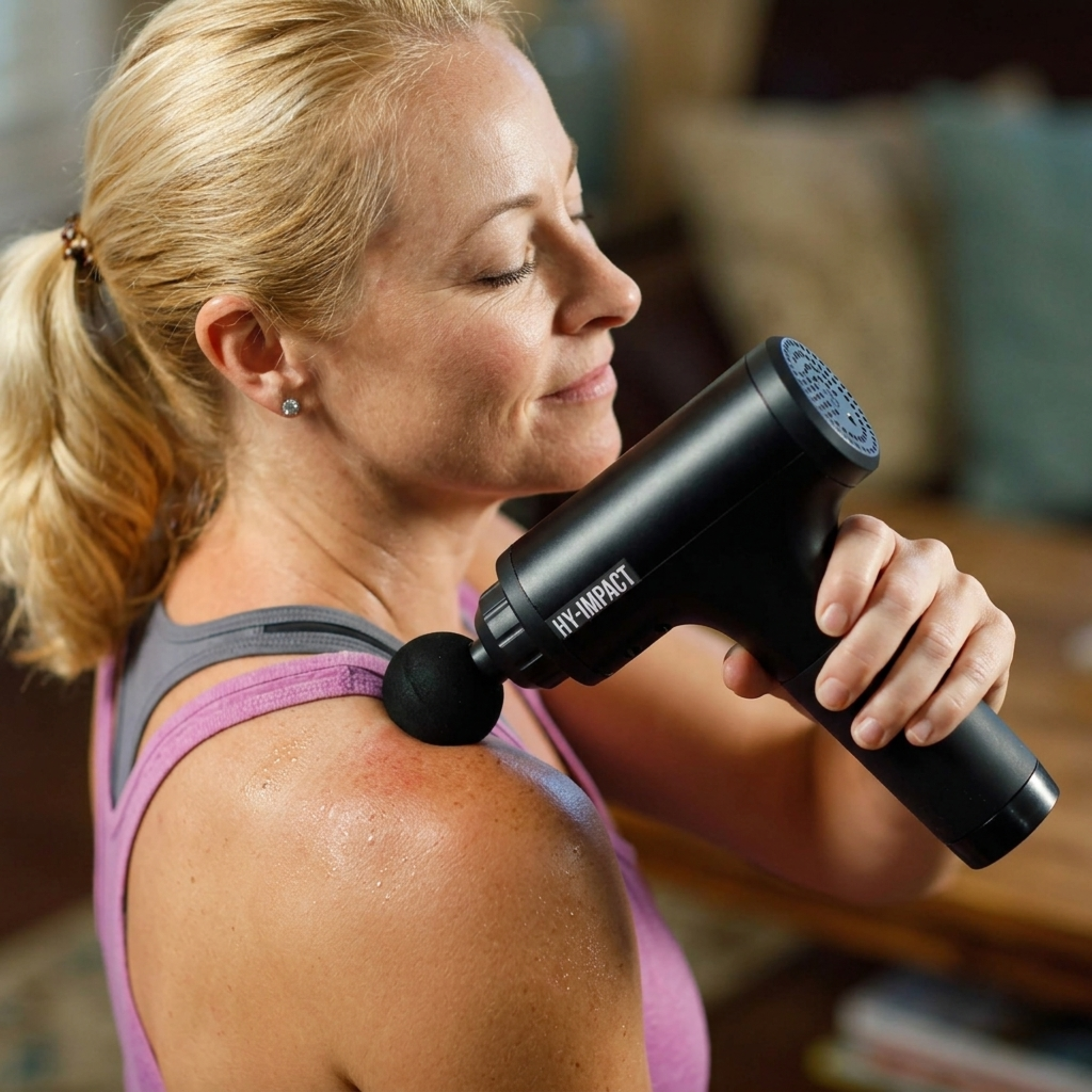 💥 El HY-IMPACT usa Terapia de Percusión — la misma técnica de los kinesiólogos — para liberar contracturas, activar la circulación y devolverte el movimiento en cualquier músculo de tu cuerpo. En minutos. En tu casa.